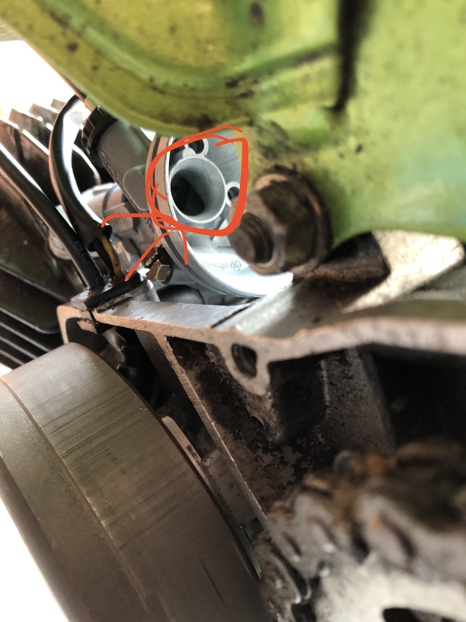 Echter! Wilde de carburateur er niet goed op blijven zitten als ie aangeschroefd is. Als ie aangeschroefd was kon je hem er zo vanaf glijden. Dat is als het goed is opgelost dmv bout en moer ipv alleen bout.