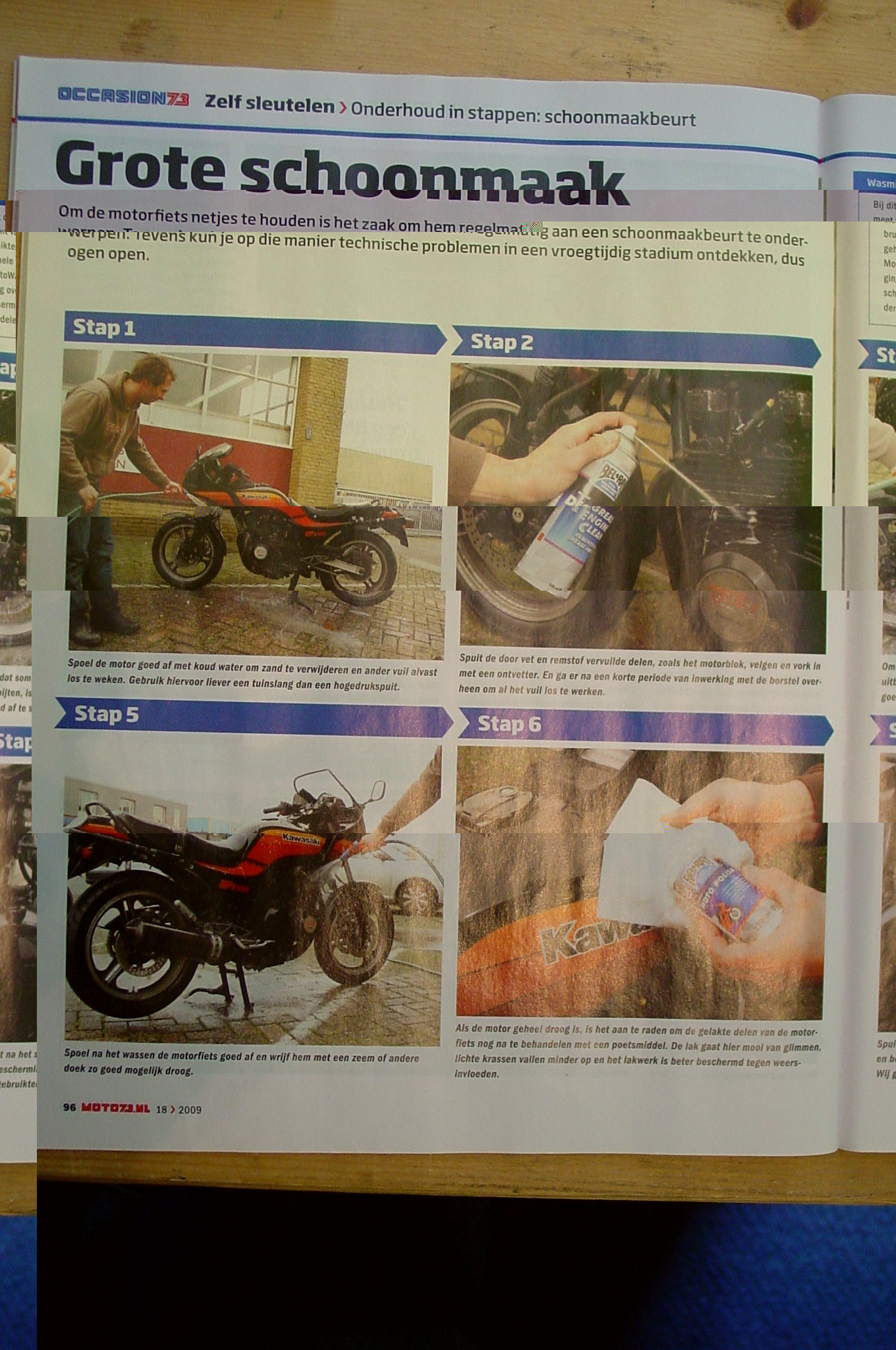 Voor dat je begint met de sponsen enzo haal je je zijkappen los en pak je de Velgen reiniger en spuit je het spul op alle plekken die vies van olie en stof zijn (ketting, velgen, achterbrug, uitlaat, etc.).