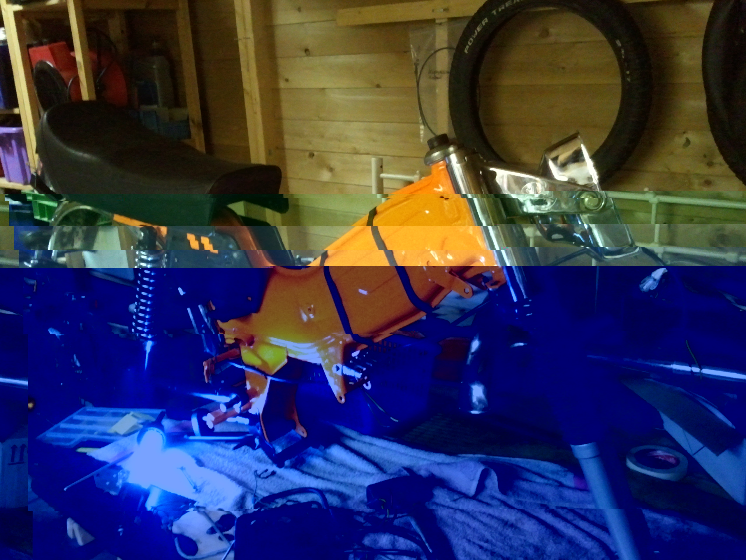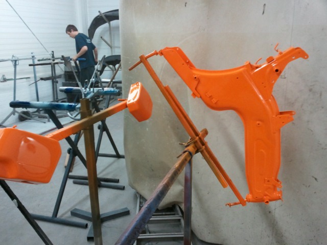 Vrijwel alles is gespoten, motorblok is gereviseerd, remklauw ben ik aan het reviseren en voorvork heb ik ook al gereviseerd. Ben nu bezig met opbouwen. Geweldig werk. Foto van hoe die er nu bij staat: