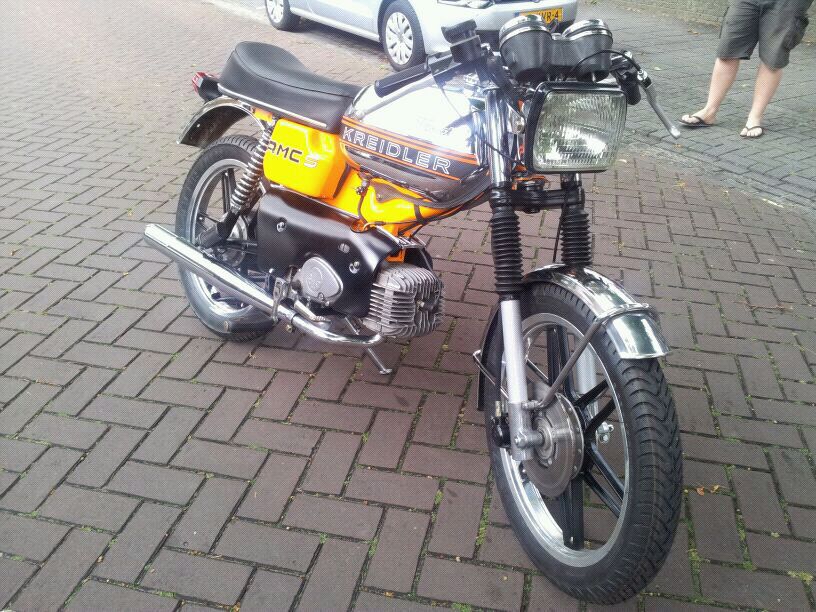 Mooi ding, vind alleen de achterveren een beetje te hoog voor een Kreidler, het haal het race uiterlijk van dat kontje een beetje onderuit vind ik.