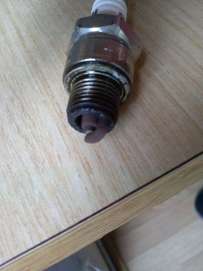 vraag over je bougie. draai hem er es uit en kijk naar de kleur van het midden van de bougie.