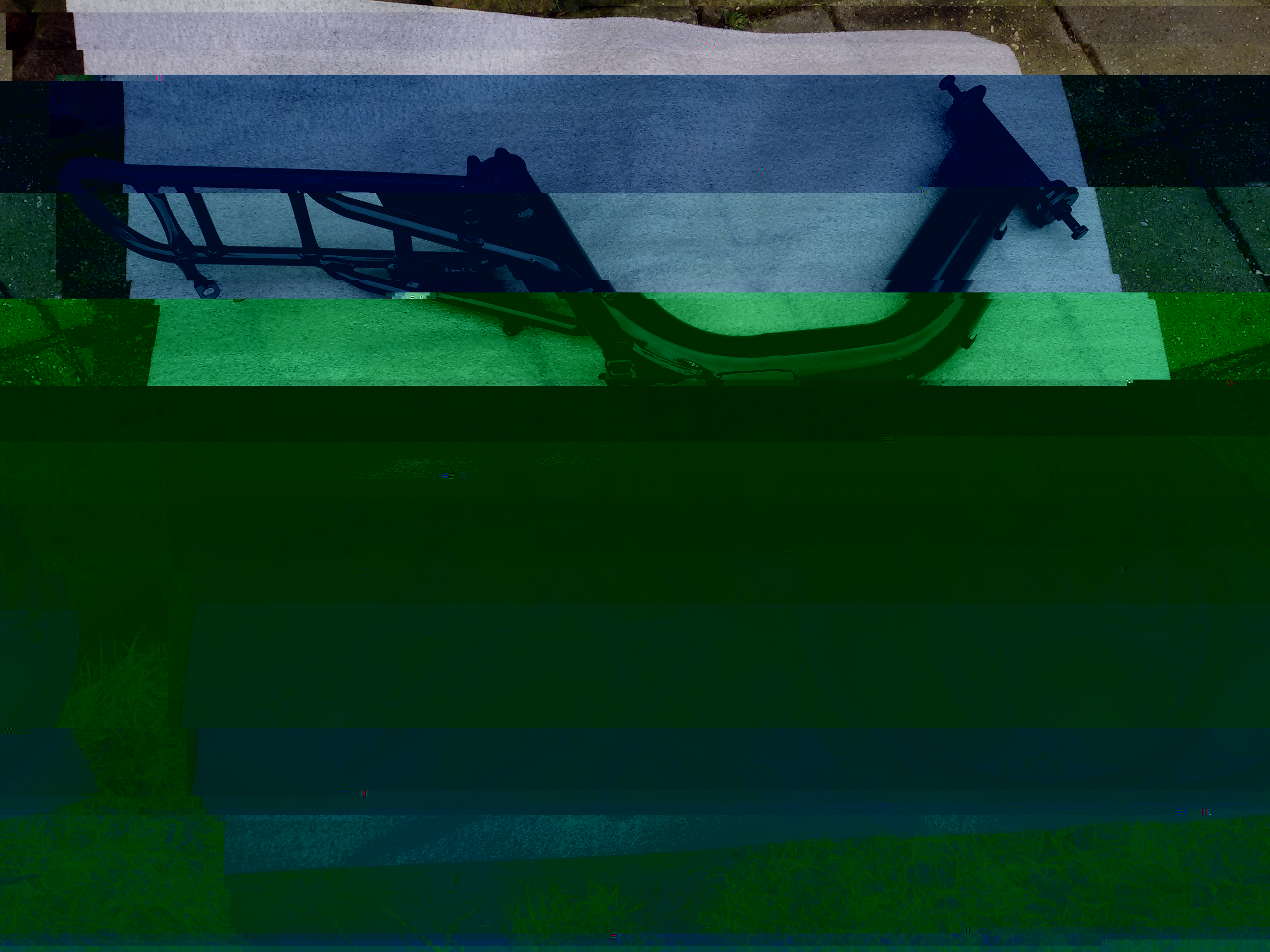 Zoals te zien moeten de kappen nog worden gespoten, dit ga ik doen zodra de temperatuur weet wat hoger is in het voorjaar. Ook moet ik nog iets van zwart rubber vinden voor de bevestiging van het zadel (nu stukjes tuinslang gebruikt) om de poedercoating niet te beschadigen.