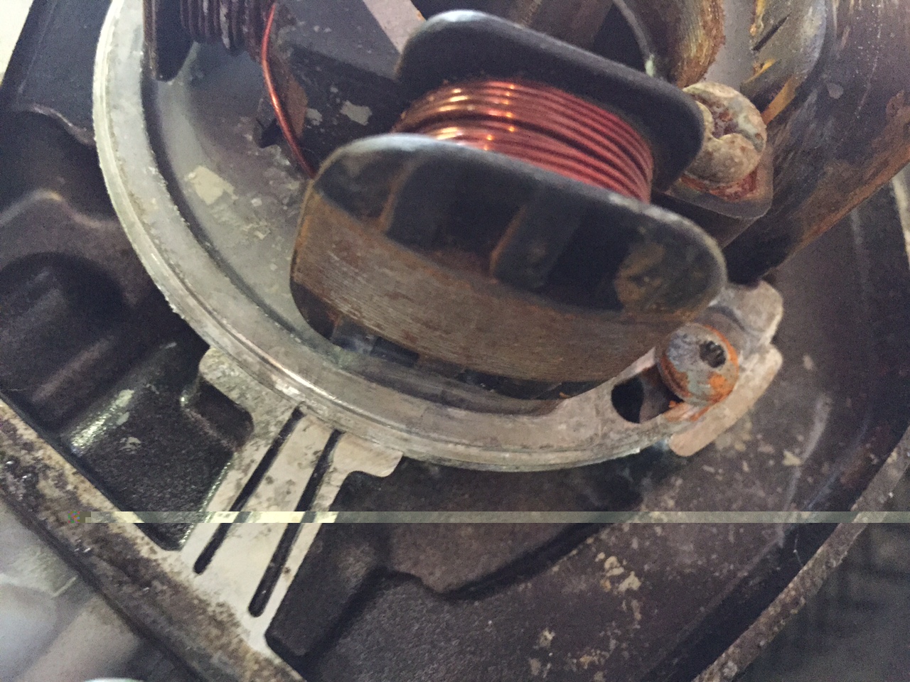 Ontsteking bekeken ( 4 spoelen) en deze stond al op het bovenste streepje (dus brom) Zie foto
