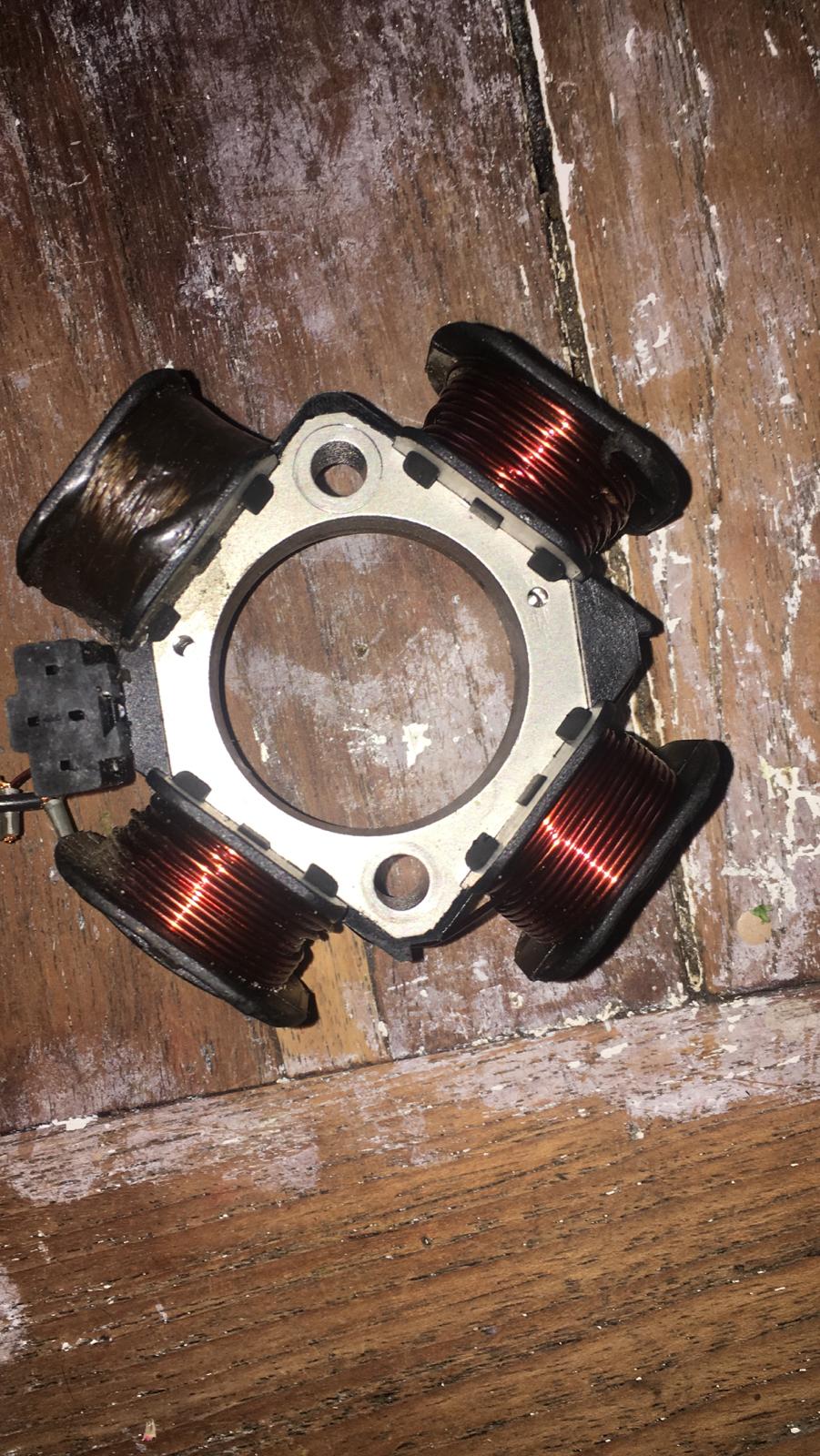 Dat beetje roest op de spoel is het probleem niet....magneten zitten in het vliegwiel.