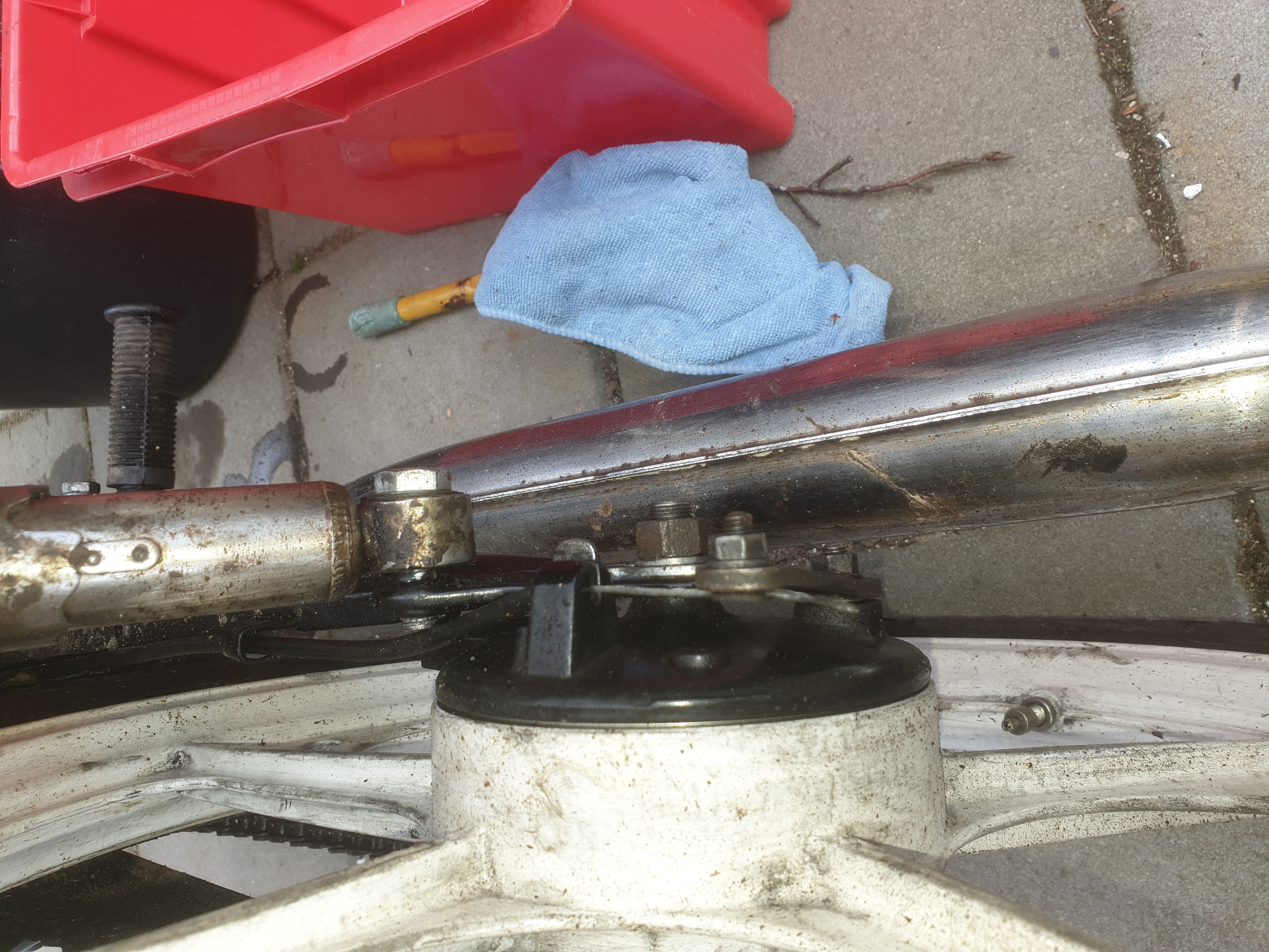 Ben nu niet thuis dus ik kijk vanavond even naar de poten van de achterbrug. Wat betreft het wiel, die heeft geen speling. Ik heb er vanmiddag nog ff aan zitten trekken maar ik kan hem niet van links naar rechts bewegen