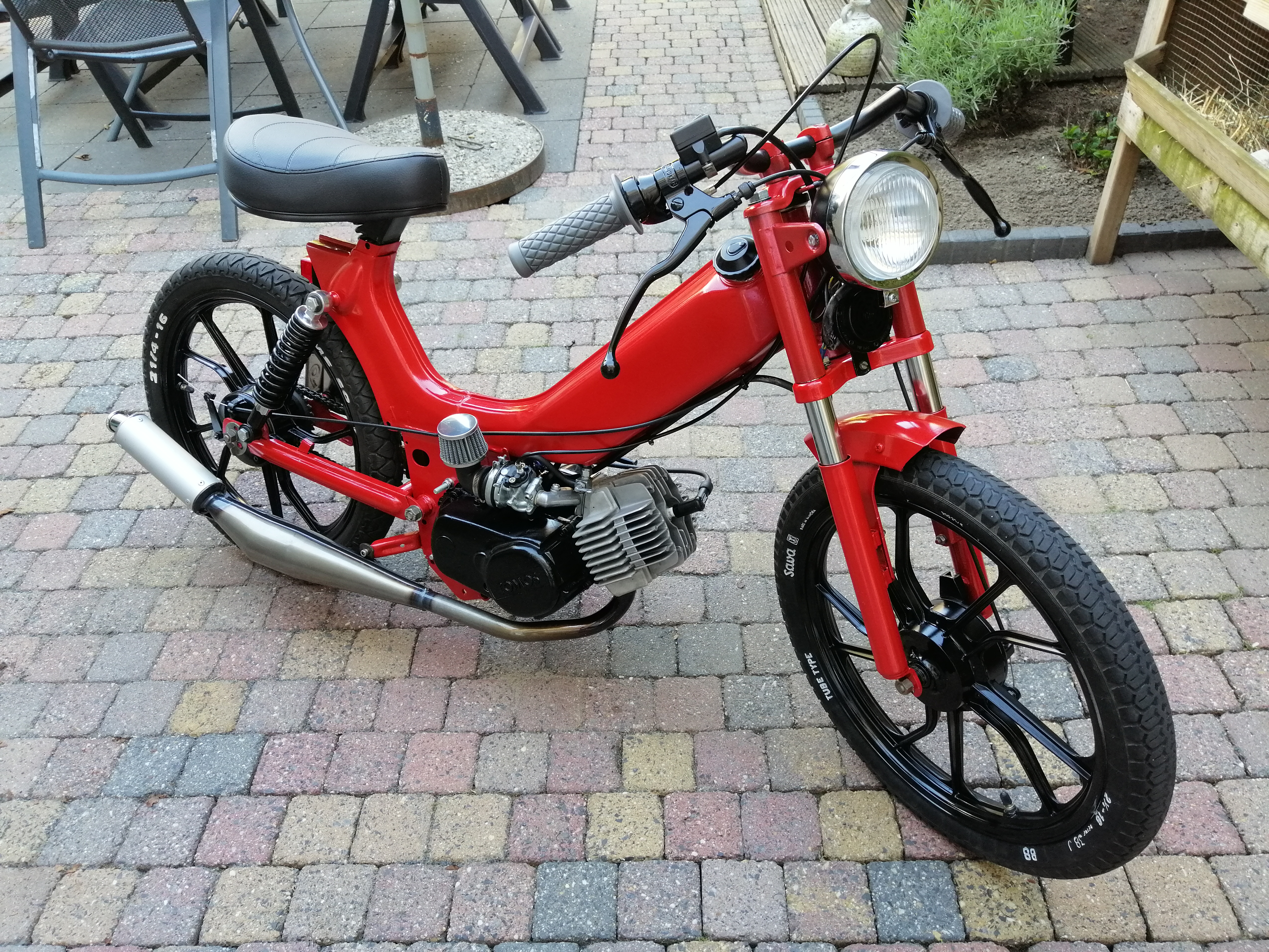 Alles van 50 naar 65cc aangepast, groter spruitstuk, grotere carburateur, ontsteking op brom, andere uitlaat.
