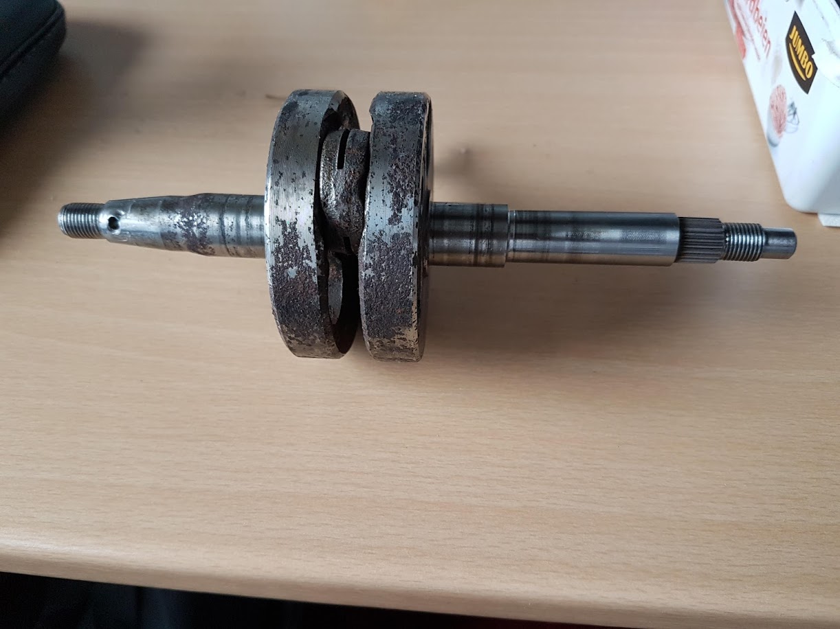 Goede tip! Ga ik doen.Voor je de nieuwe krukas monteert even de breedte over de wangen meten (waar de lagers tegenaan komen) en vergelijken met de oude krukas.
