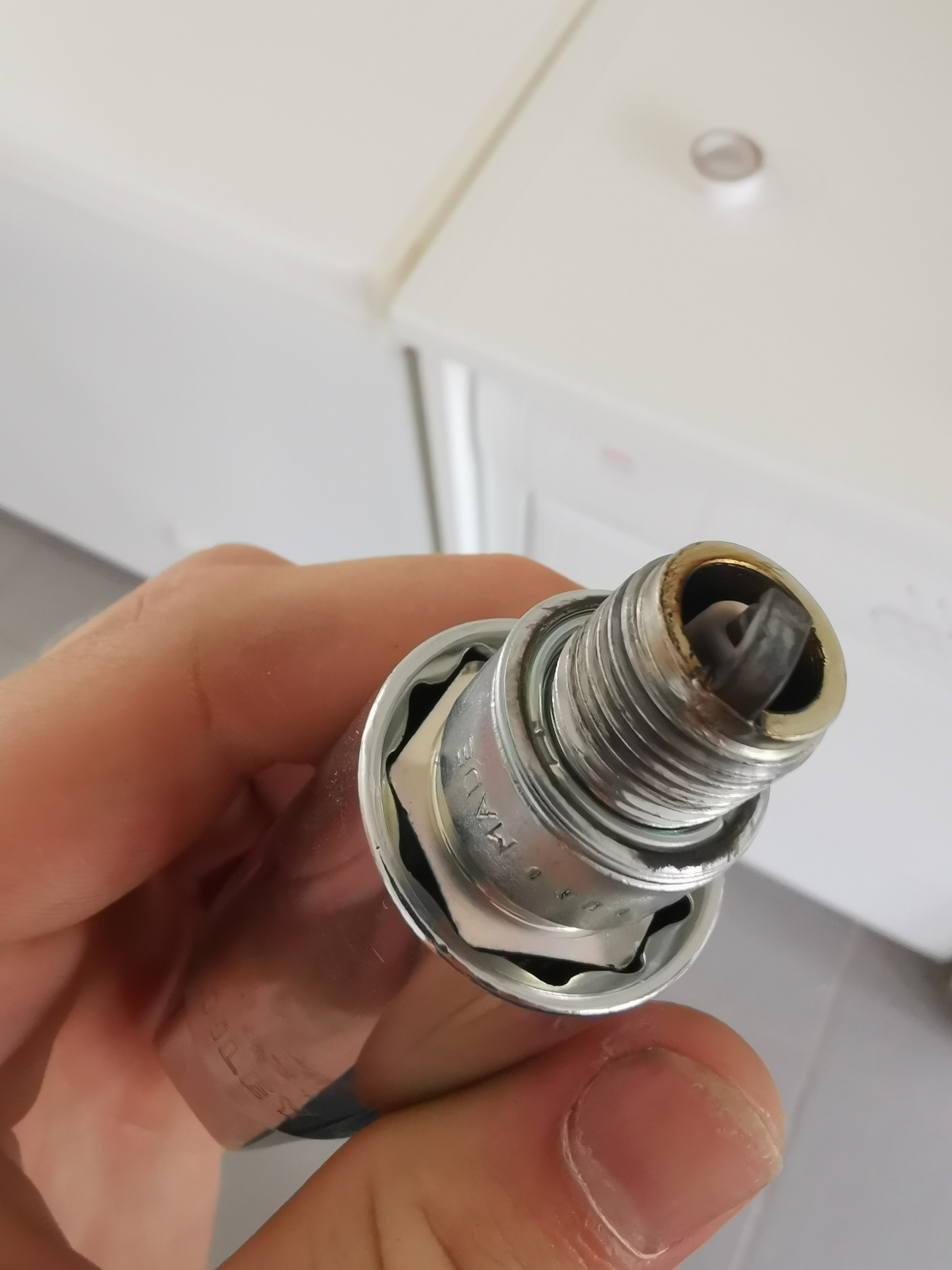 Ik zie aan de rand van je bougie een zwarte/ natte laag, wat duidt op een onvolledige verbranding en dus te rijke afstelling. Wat fons716 al aageeft, warme lucht kan minder brandstof bevatten dan koude lucht, dus in de zomerdagen kan het zijn (zeker nu de temperaturen richting de 30 graden gaan) kan dan juist een grotere sproeier problemen geven. Vaak is de af-fabriek gemonteerde sproeier een compromis tussen de twee uitersten om niet continue de sproeier te hoeven wisselen.