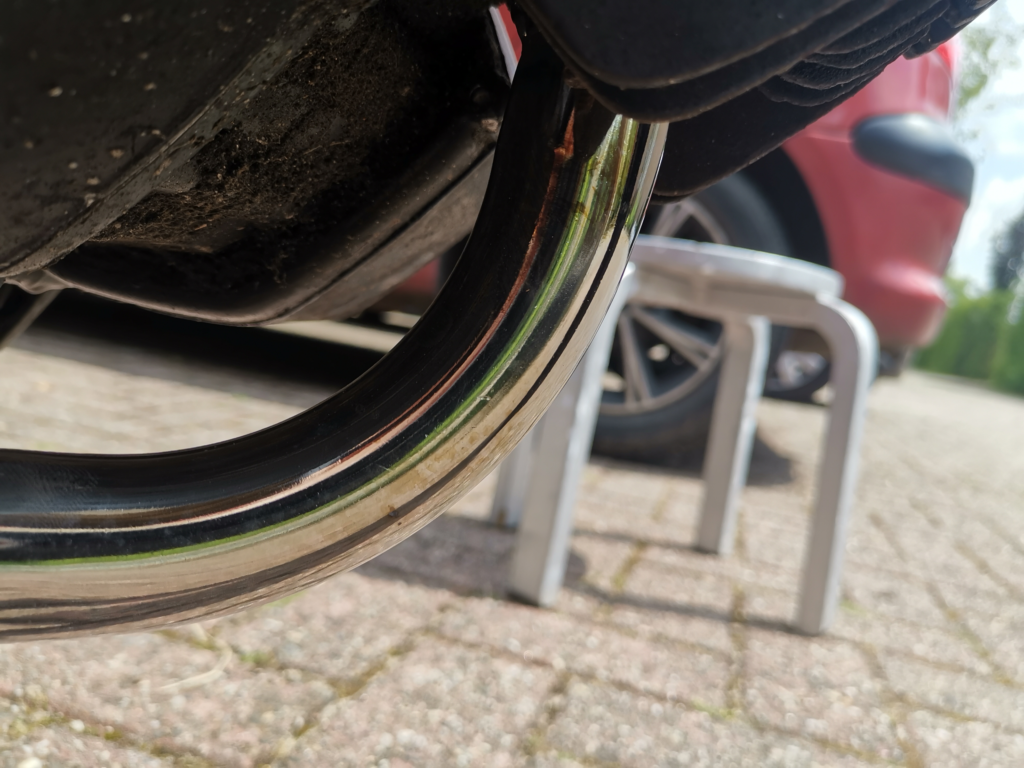 Ja klopt dit was tijdelijk anders hing die los en dat was nog slechter geweest maar de orginele beugel is nu gelast en hangt nu weer vast.Heb je de uitlaat aan de achterbrug vast gemaakt met ijzer draad (foto 11)