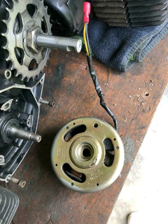 Bedankt en wat voor vliegwiel? Of maakt dat niet uit?Een 2 spoels, mag met of zonder contactpuntjes zijn, je kunt het simpel zien aan de grondplaat bevestiging sleuven.