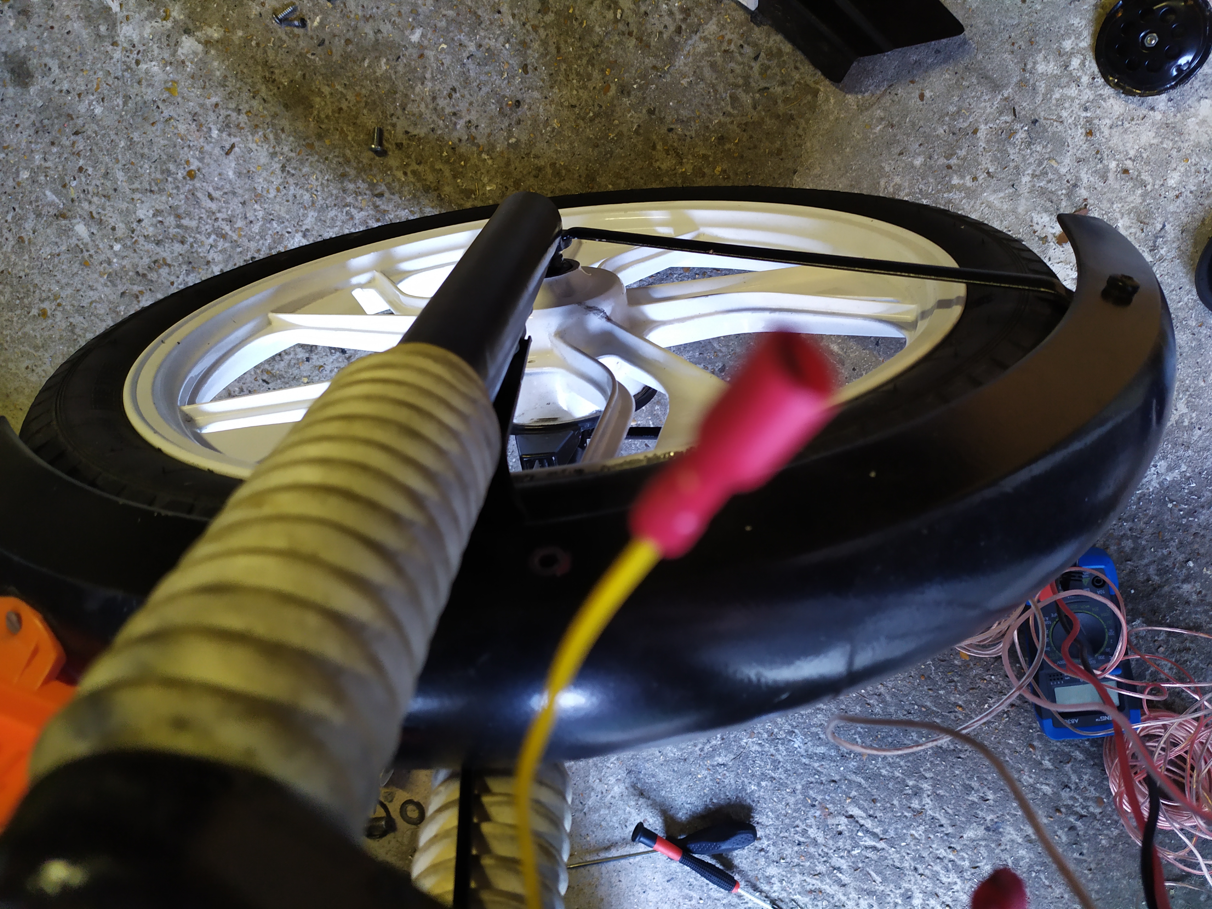 ik heb het even getest en ik denk dat ik namelijk de claxon hebt opgeblazen ofzo want ik krijg zo'n 20+- volt binnen (max 25v) op mijn meter als ik rond rij maar heb ik mijn lichten aan krijg ik 13+- volt (max 15v). dus misschien moet ik een nieuwe kopen en mijn lichten aanlaten?