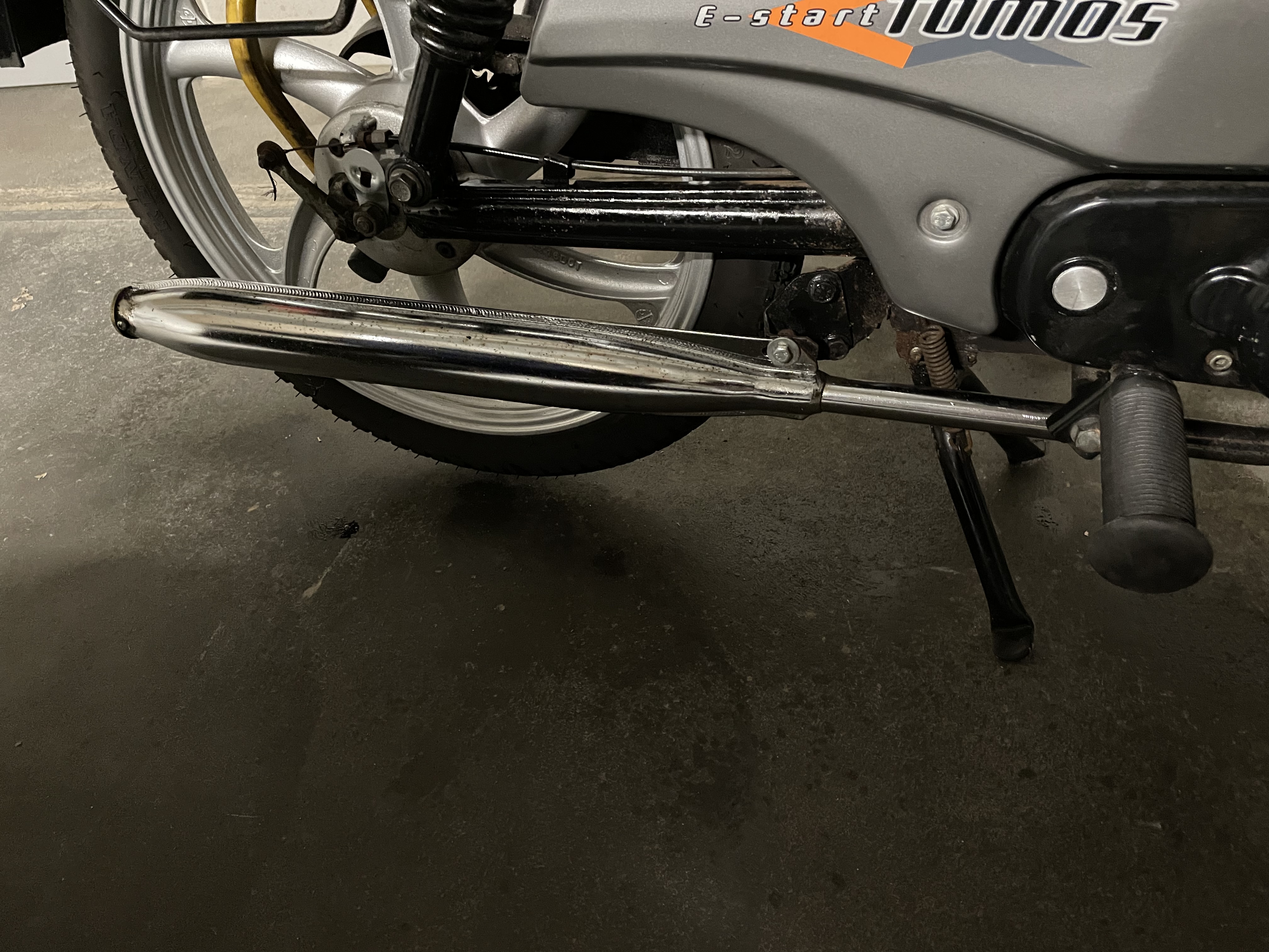Onze Tomos hebben we met een dunne pijp in de demper van de uitlaat vertraagd van 50 naar iets van 37km per uur. Werd er ook nog eens mooi stil van.