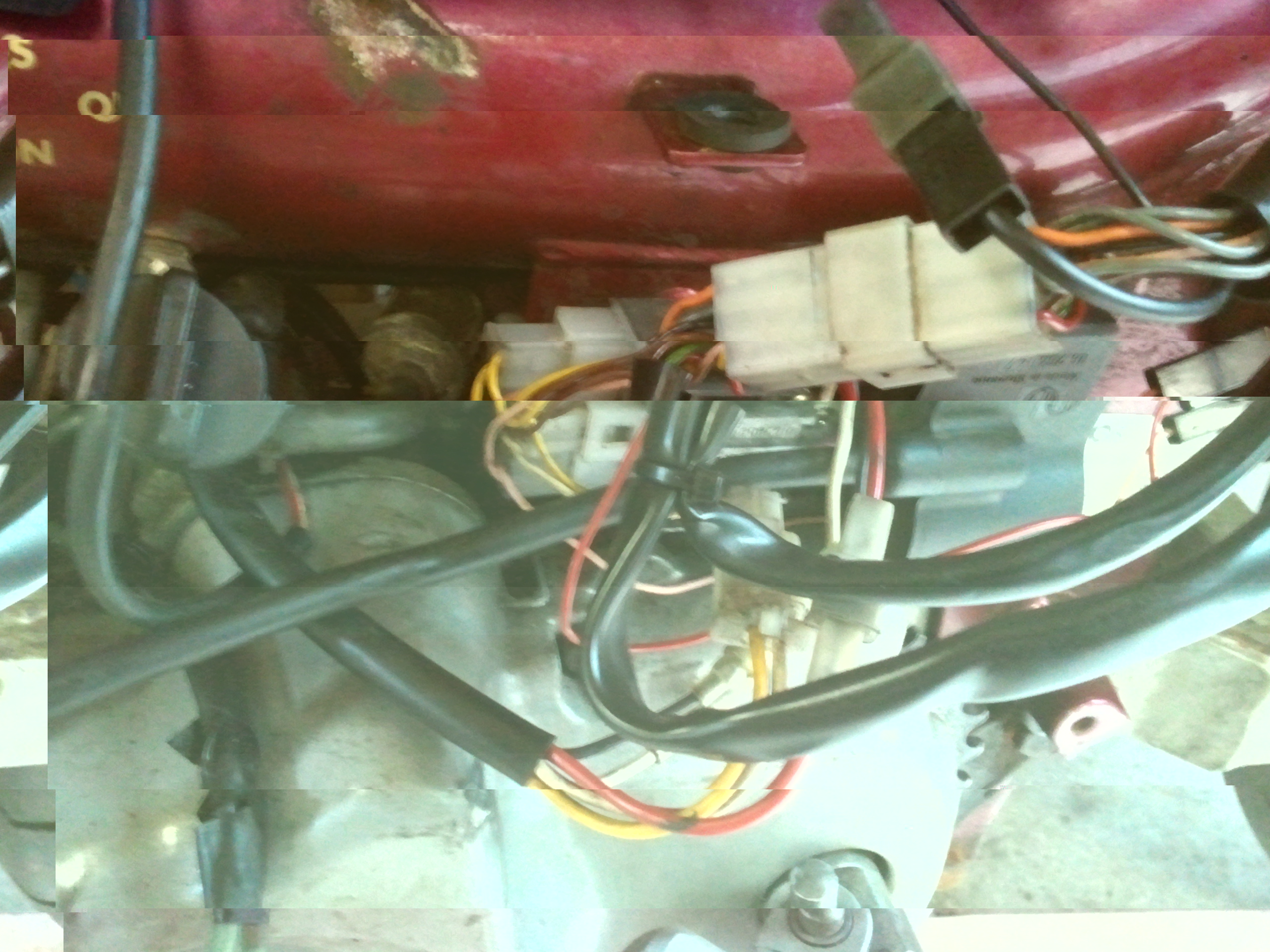 Ik heb de stekker met dubbele zwarte draad aan mijn bobine gedaan en van daaruit door naar de rode draad die uit mijn motorblok komt. De draad naar de startmotor heb ik vast gemaakt aan het stekkertje dat ik nog over had, namelijk de zwarte draad die in mijn kabelboom verdwijnt.