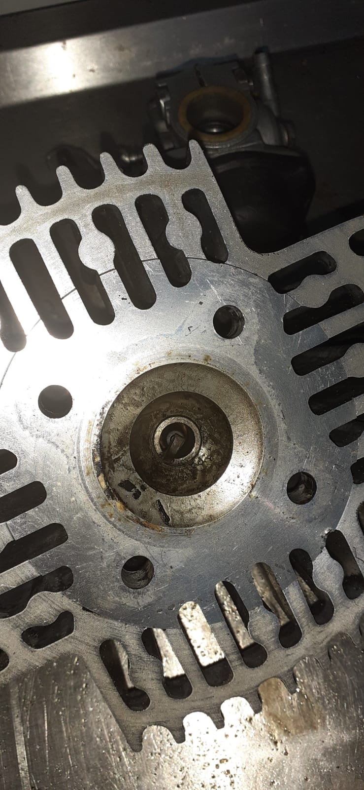 Als ik je foto's bekijk, heb je een poortgestuurde cilinder (ei-model??), dus zonder membraan. Dit zie ik aan de aansluiting van het spruitstuk op de cilinder (2-bout bevestiging). Hiervoor heb je een dicht model zuiger nodig, dus niet een met sleuven zoals op de foto. Die is bedoeld voor membraancilinders.