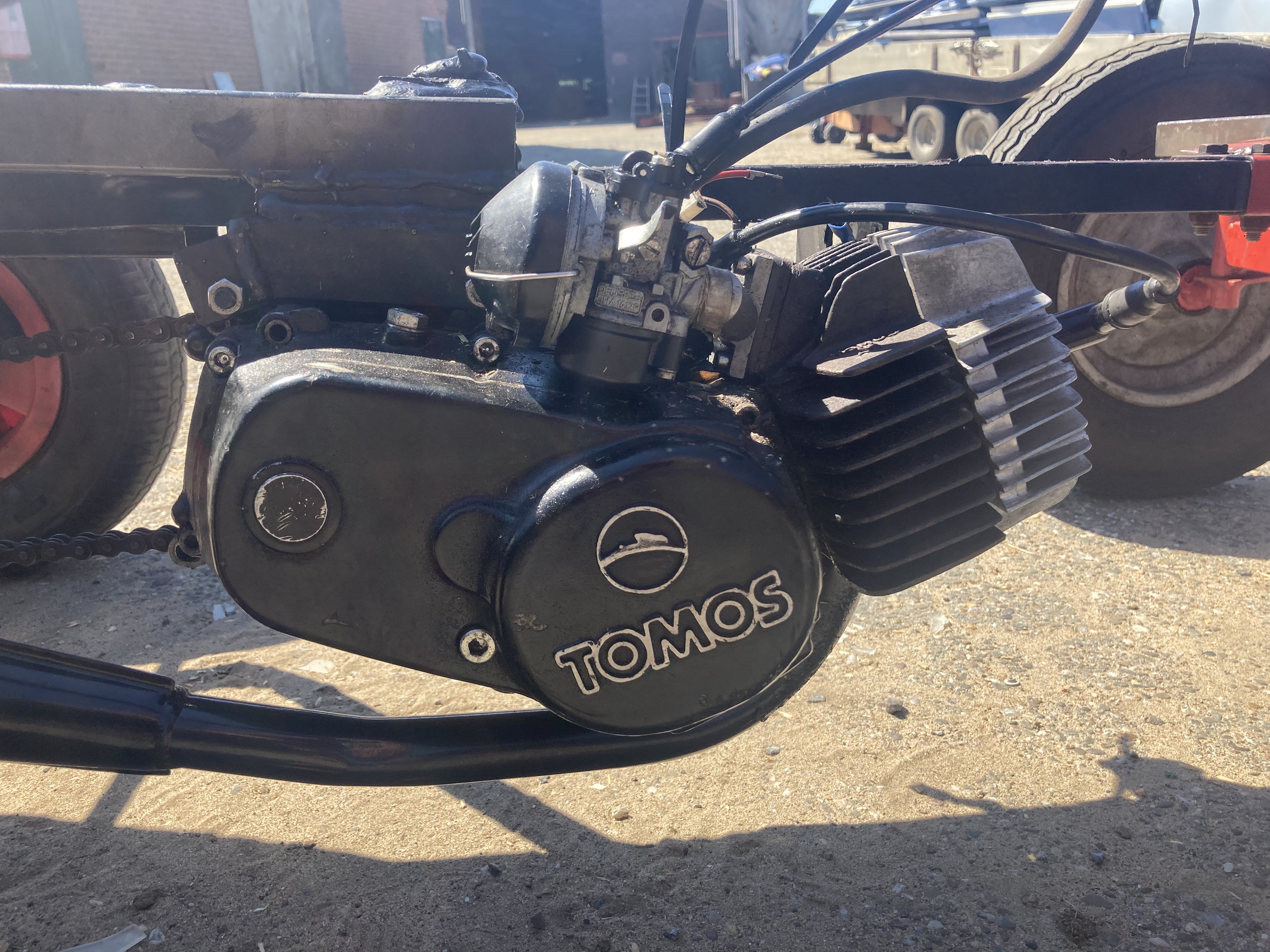 Ik heb ongeveer een jaar geleden deze gemotoriseerde skelter gebouwd. Met het best geschikte motorblok dat ik maar kon bedenken er op, een tomos blok.