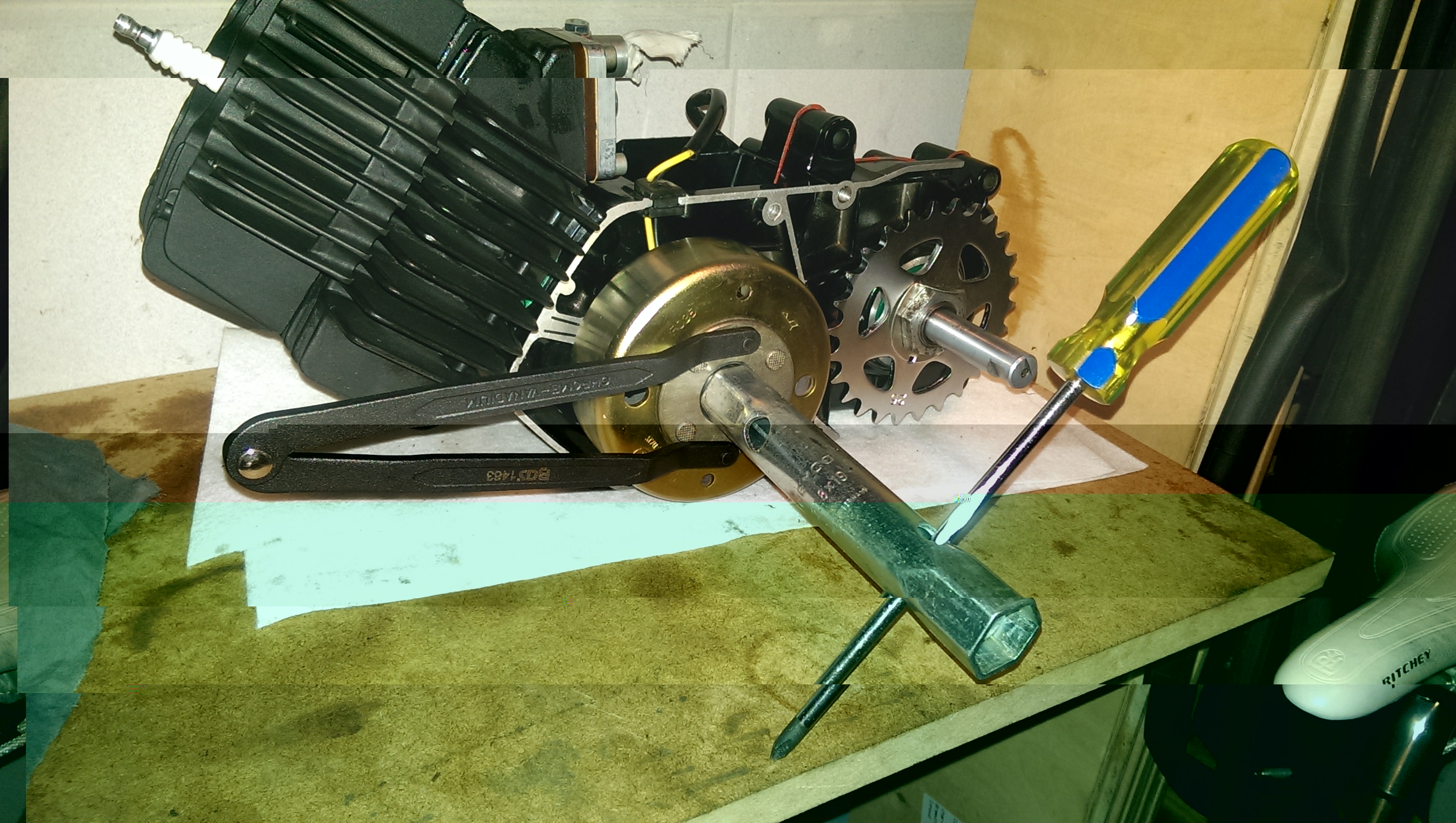 Nieuwe lagers, nieuwe pasbusjes en de schroefdraad voor het ontstekingsdeksel gemaakt met Helicoil, verder de pakkingsvlakken een klein beetje gelapt met fijn schuurpapier en een glasplaat alvorens het geheel weer te monteren.