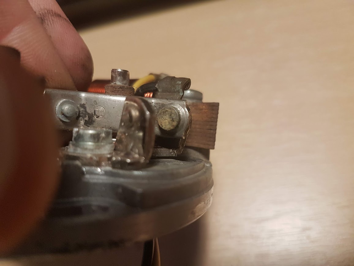Het vliegwiel druk de punten open en dat deel moet mooi glad zijn anders slijt het fiber nokje van de punten erg snel, viltje in de grondplaat moet je oliën zodat hij het vliegwiel smeert en het zaakje niet roest.