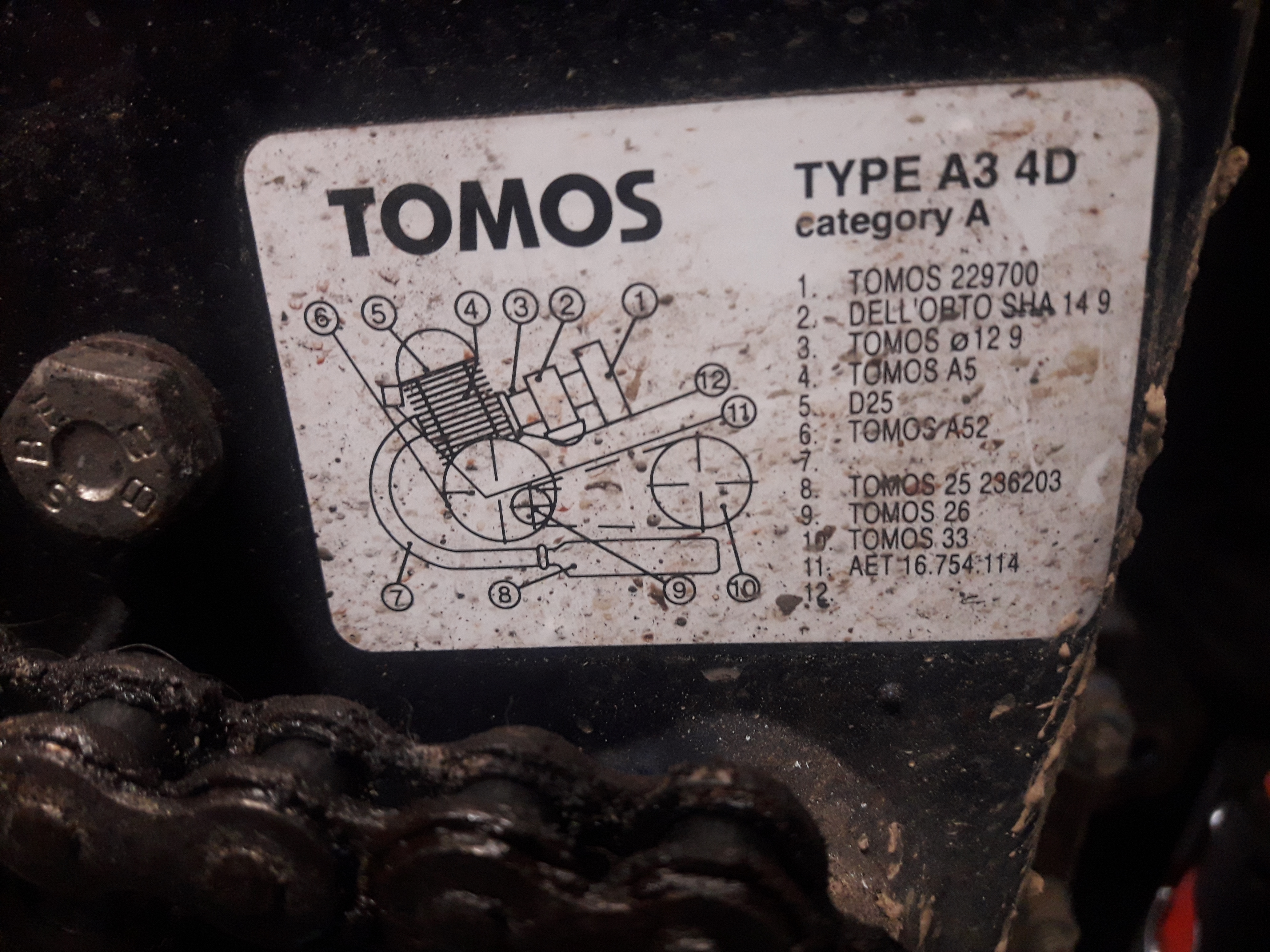 Tomos A3 DG (1989) ei-cilinder, Encarwi sproeier 50, gaasfilter (50km/uur)