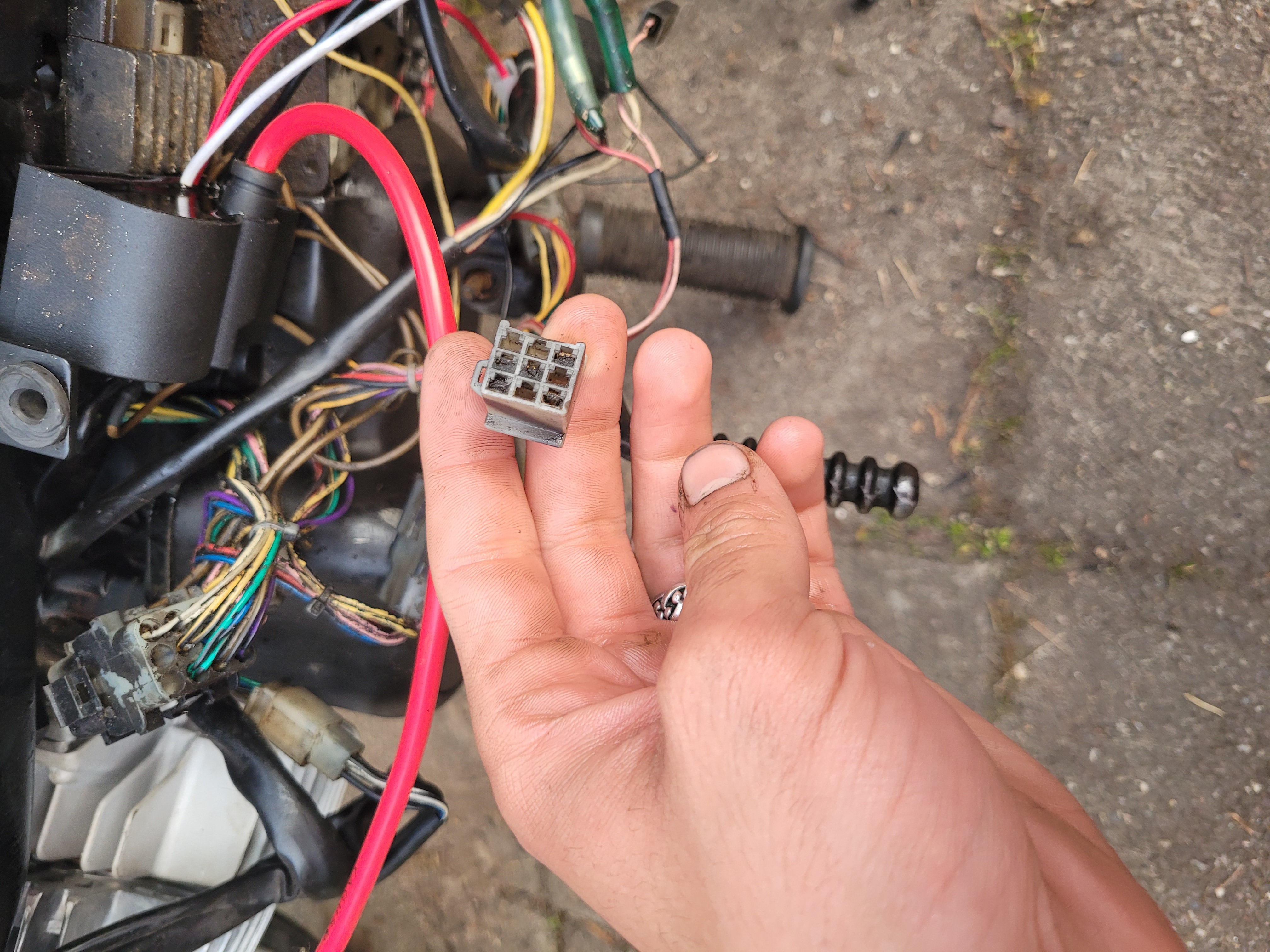Wel zie ik dat er een kabeltje los hangt. Ik weet niet waar die aan gemonteert zou moeten worden. Er zijn sowieso losse kabels. Want het blok ondersteunt e-start. Maar die is niet aangesloten. Dus alleen kicken. Als iemand raad weet. Heel graag en alvast bedankt.
