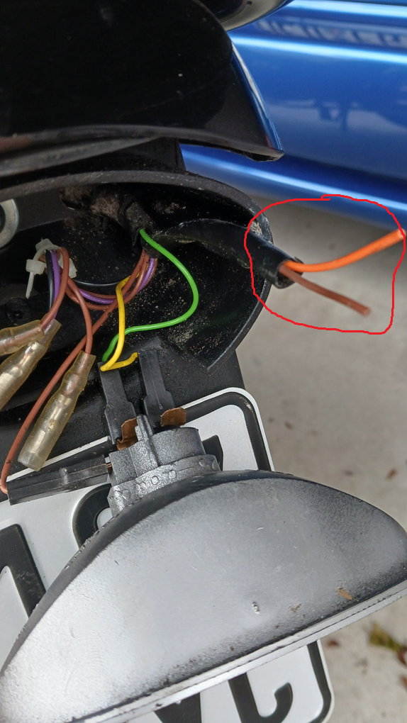Das orangefarbene Kabel (mit dem braunen Massekabel) gehört wahrscheinlich zum Füllstandssensor des separaten Zweitakt-Öltanks. Möglicherweise hat der Vorbesitzer Öl und Benzin selbst gemischt und dadurch den Sensor deaktiviert, was dazu geführt hat, dass die Kontrollleuchte im Cockpit nicht mehr funktioniert. Müssen Sie das Öl immer noch separat in den Tank füllen und den Benzintank (max. 5 % Ethanol) separat befüllen, oder mischen Sie das auch selbst?