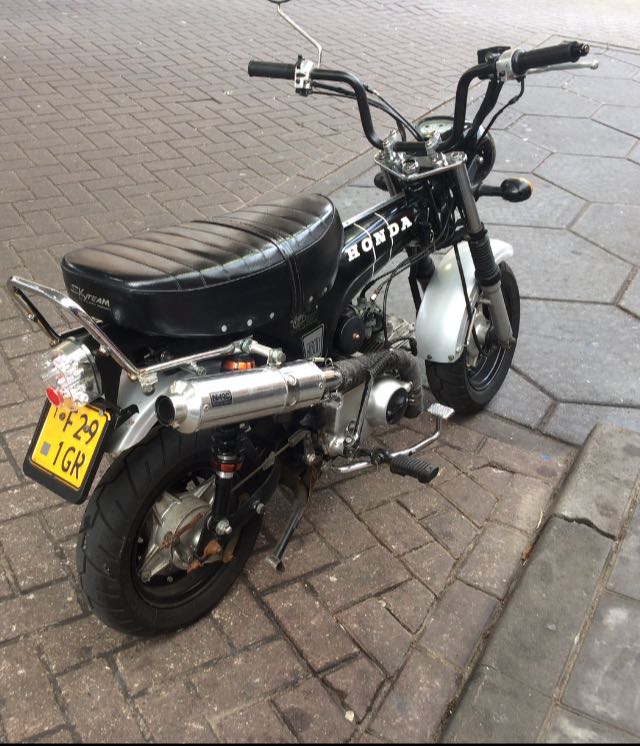 Die uitlaat onder je Dax ziet er bruut uit, alleen had ik de heatwrap weggelaten.