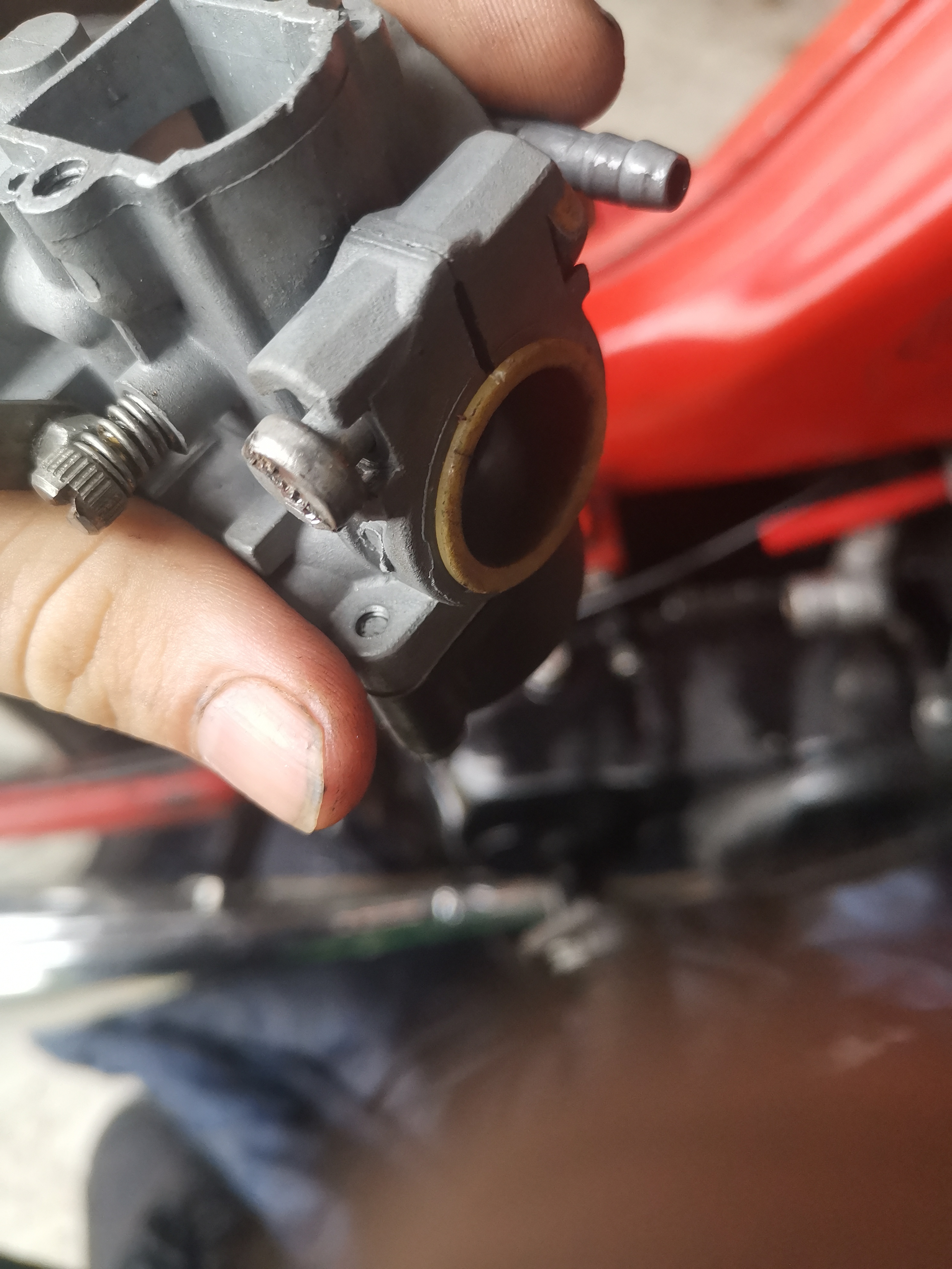 Nee bus moet uit de carb dan de rubber ring helemaal erin en daarna de kunststof ring weer erin. Rubber zit bijna tegen de gasschuif.