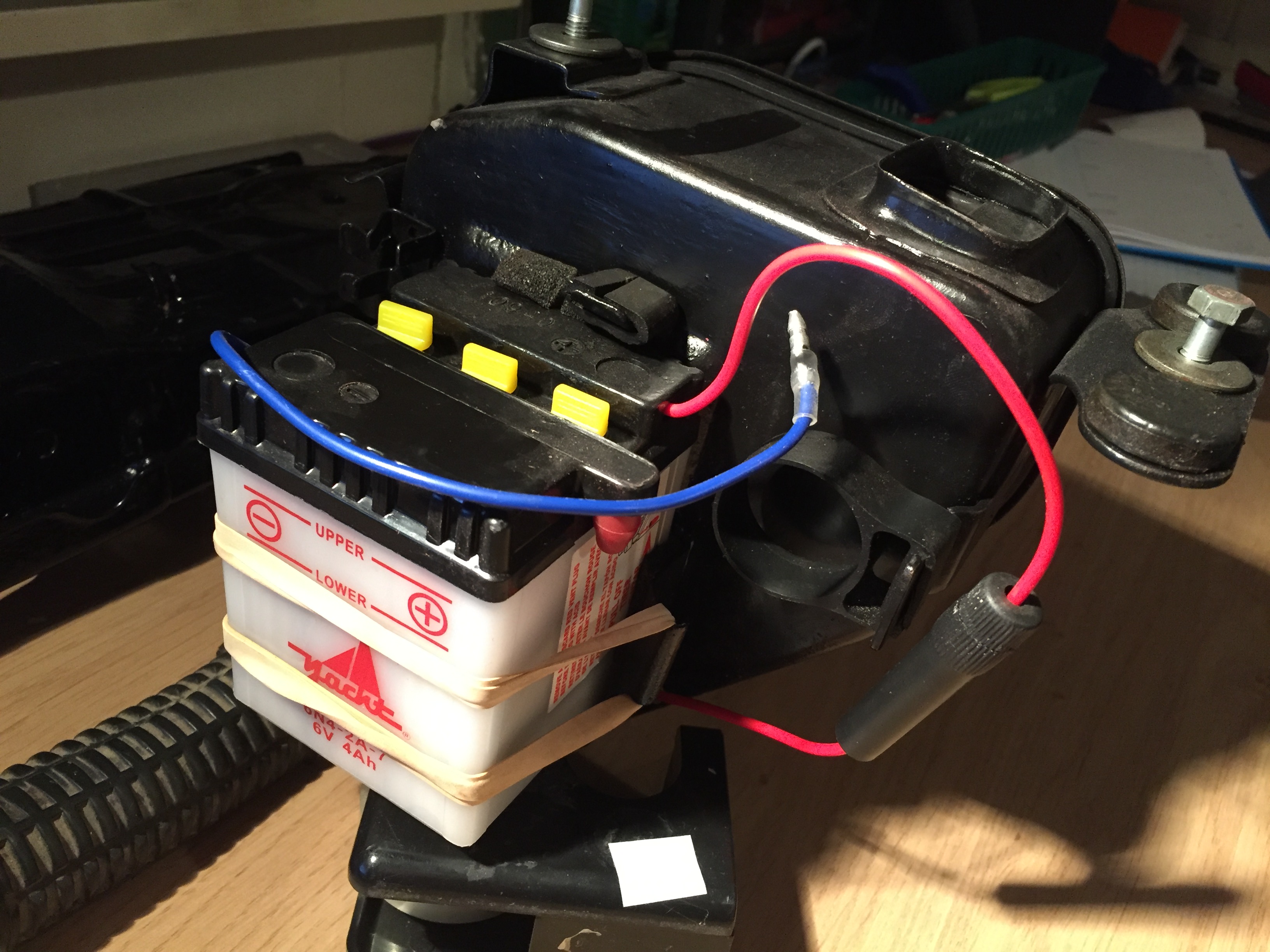 De laatste tijd veel gedonder gehad met kapotte lampen, accu's, Spanningsregelaar en knipperlichten. Ik heb besloten alles van elektra eraf te gooien en over te stappen op fietslampjes, totdat ik tijd en zin heb om een simpele kabelboom in elkaar te prutsen. Wel wat jammer van de e-start kabelboom, maar ze hebben vind ik iets te veel elektra in een Tomos proberen te stampen.