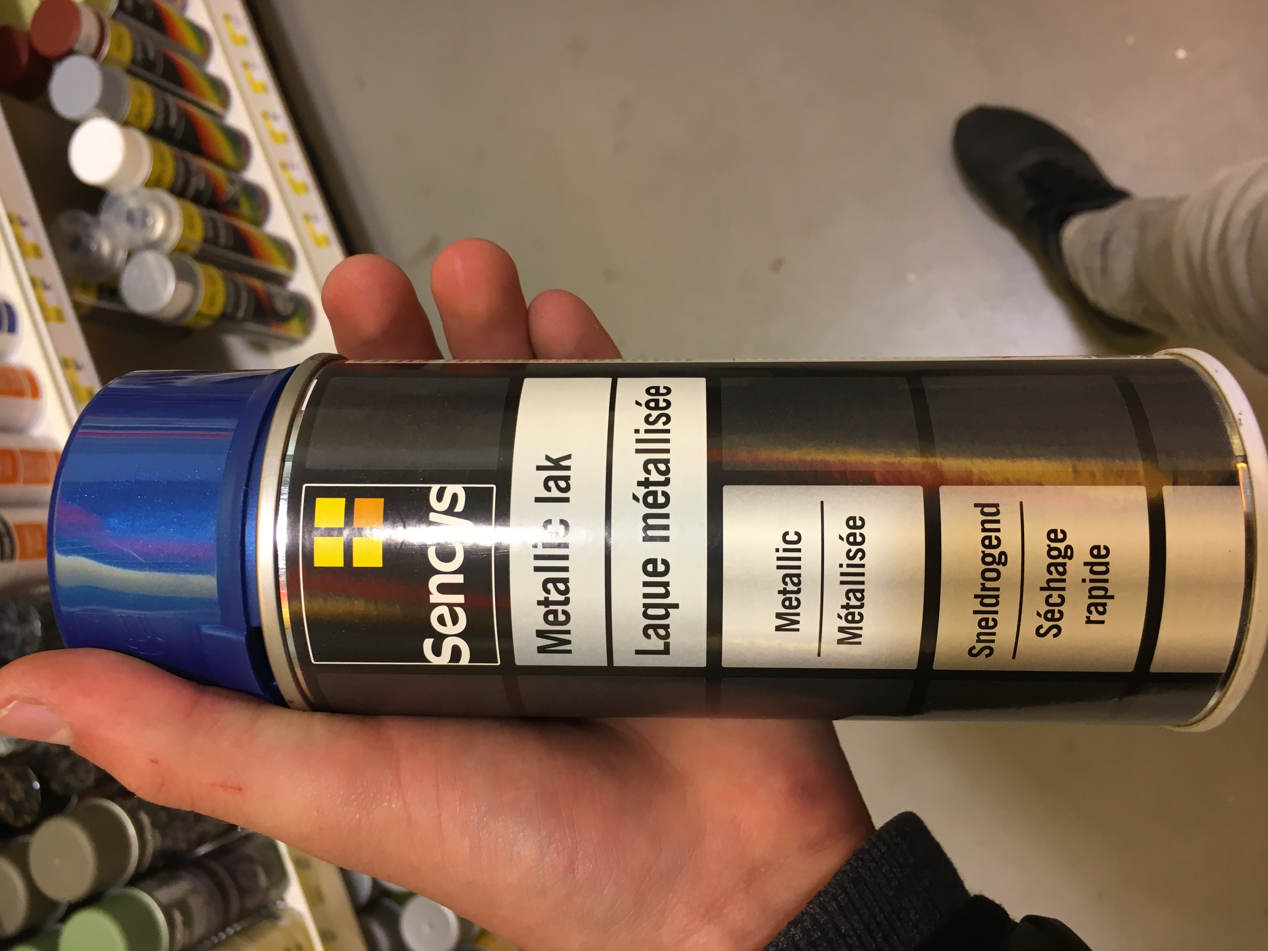 en deze verf ga ik halen. metallic blauw. maar ik had niet genoeg geld bij me...