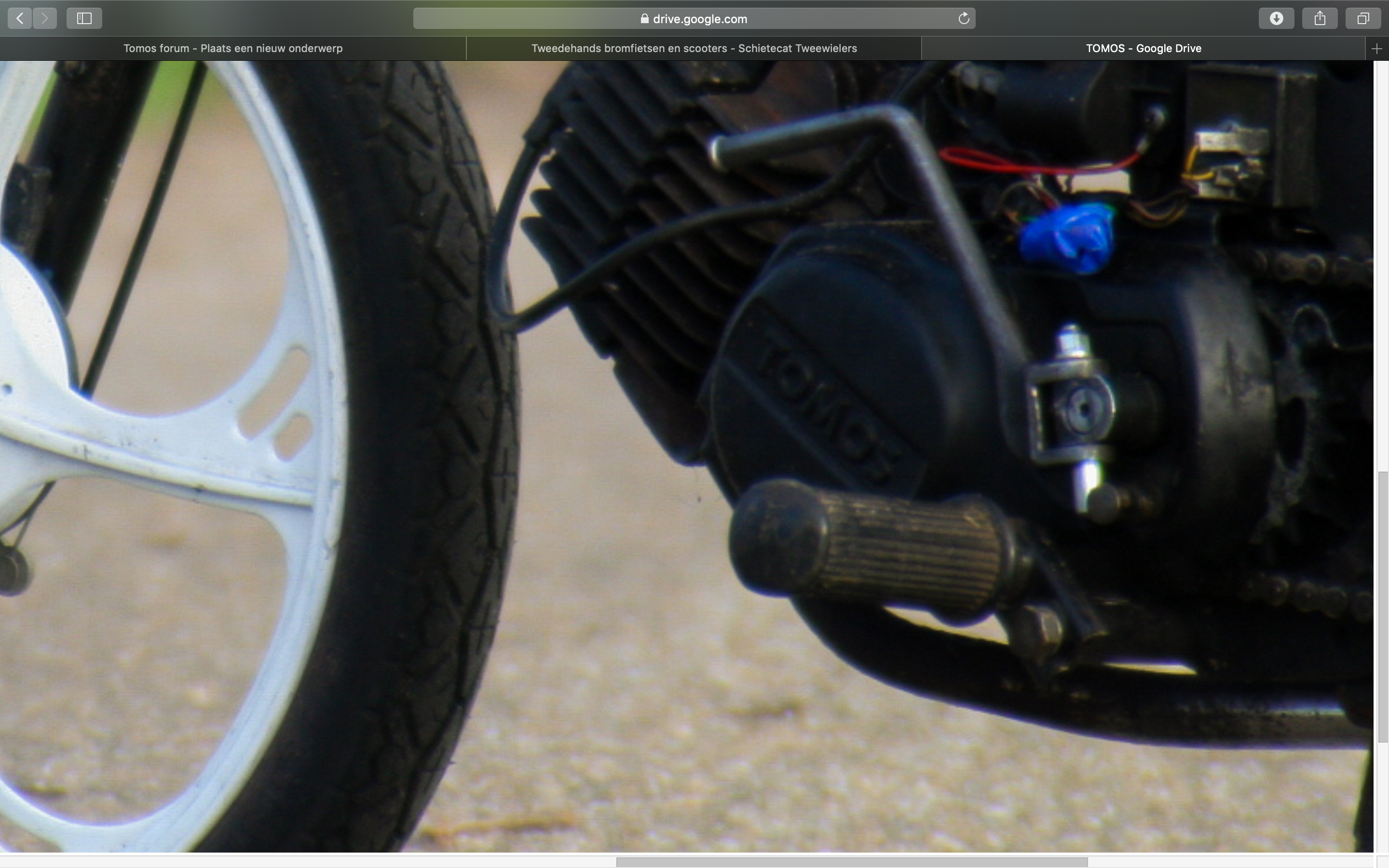 Ik sta op het punt om een tweede Tomos bij te kopen, met een geel kenteken, omdat mijn huidige Tomos dat niet heeft. Het is een opknapper uit 2006, en de linker kickstartdeksel is afgebroken, zoals op de foto: