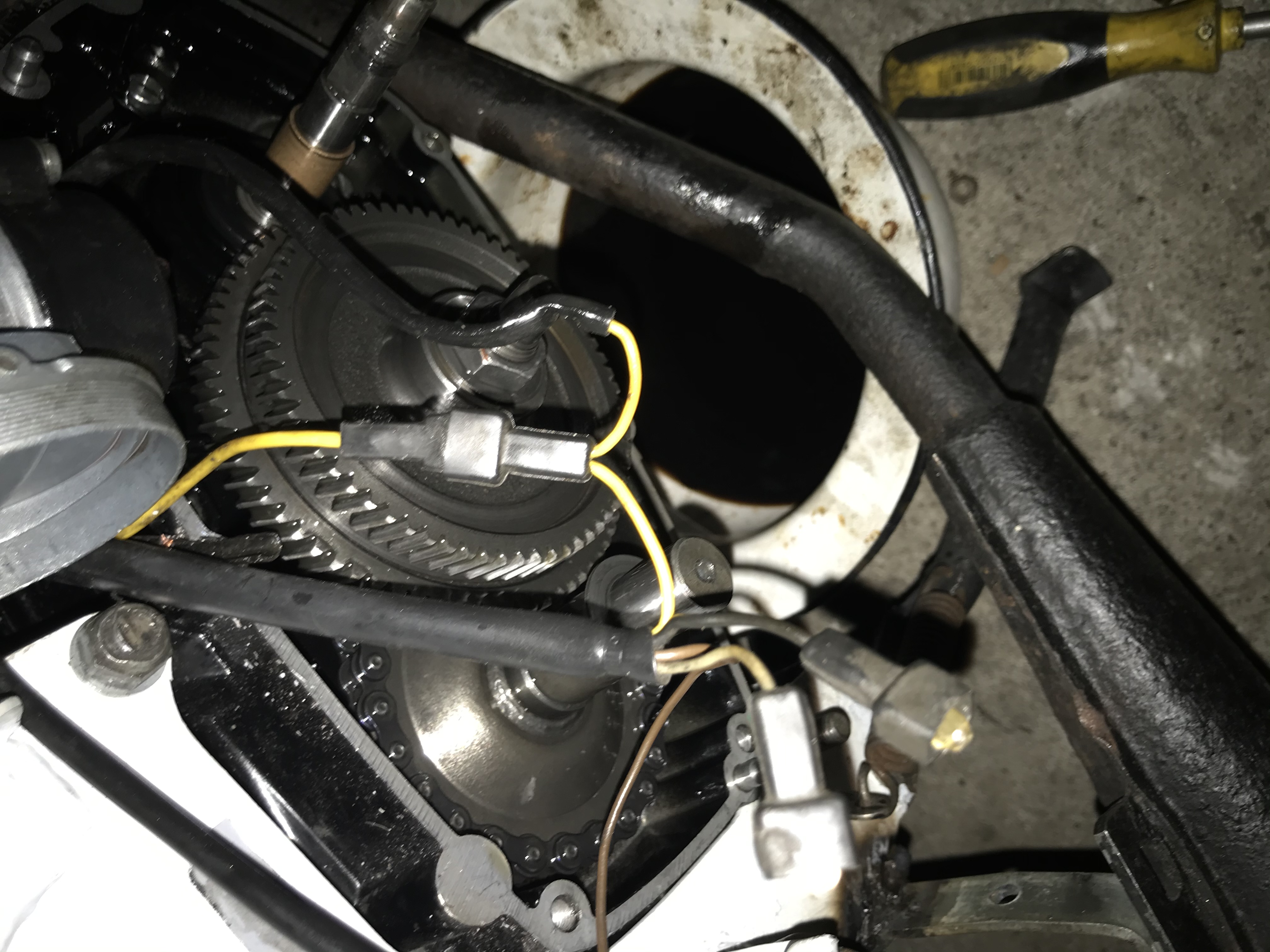 Ook weet ik niet hoe ik eigenlijk heel de kabelboom aan moet sluiten. Ik heb bij de voorkant 2 kabels naar de toeter en 3 draden naar de koplamp. De kabelboom loopt dan naar beneden en de gele heb ik nu op de spanningsregelaar zitten en op de ontsteking(gele draad uit de ontsteking) dan heb ik bruine op de massa zitten en de zwarte en grijze kabel loshangen. Voor het achterlicht heb ik hem contact laten maken en hang de andere nog los.