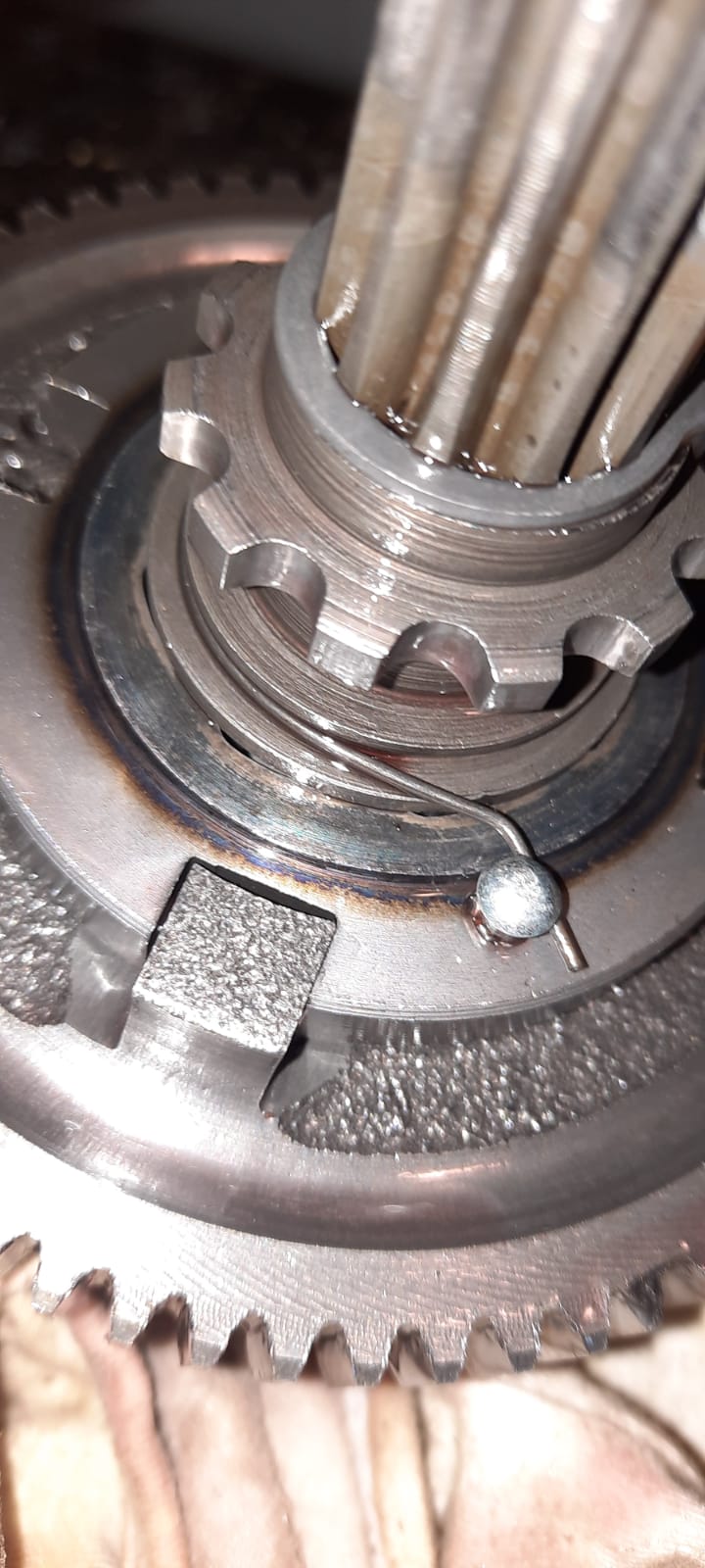 Ik ga voor het tandwiel wat los op de as van het blok zit.